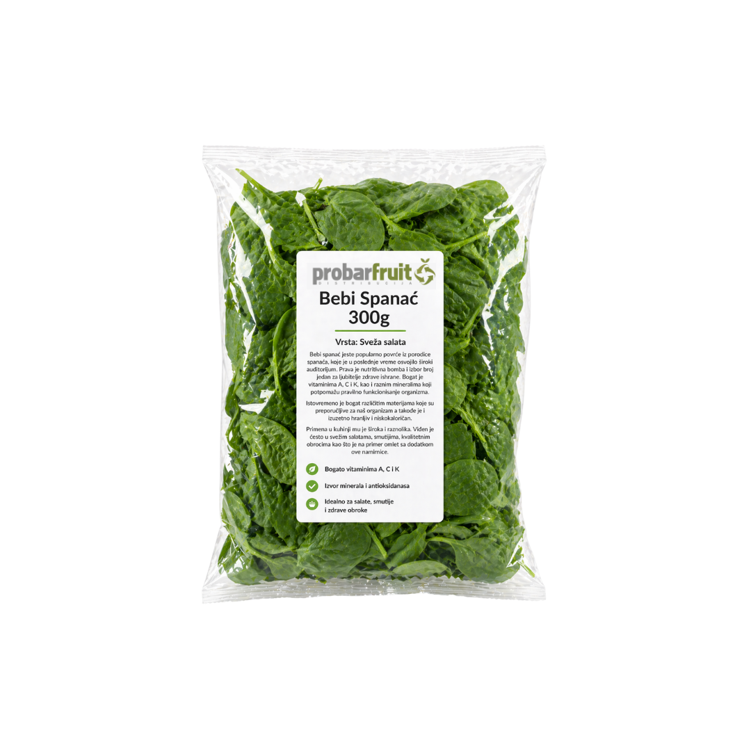 Bebi spanać jeste popularno povrće iz porodice spanaća, koje je u poslednje vreme osvojilo široki auditorijum. Prava je nutritivna bomba i izbor broj jedan za ljubitelje zdrave ishrane. Bogat je vitaminima A, C i K, kao i raznim mineralima koji potpomažu pravilno funkcionisanje organizma. Istovremeno je bogat različitim materijama koje su preporučljive za naš organizam a takođe je i izuzetno hranljiv i niskokaloričan. Primena u kuhinji mu je široka i raznolika. Viđen je često u svežim salatama, smutijima, kvalitetnim obrocima kao što je na primer omlet sa dodatkom ove namirnice.